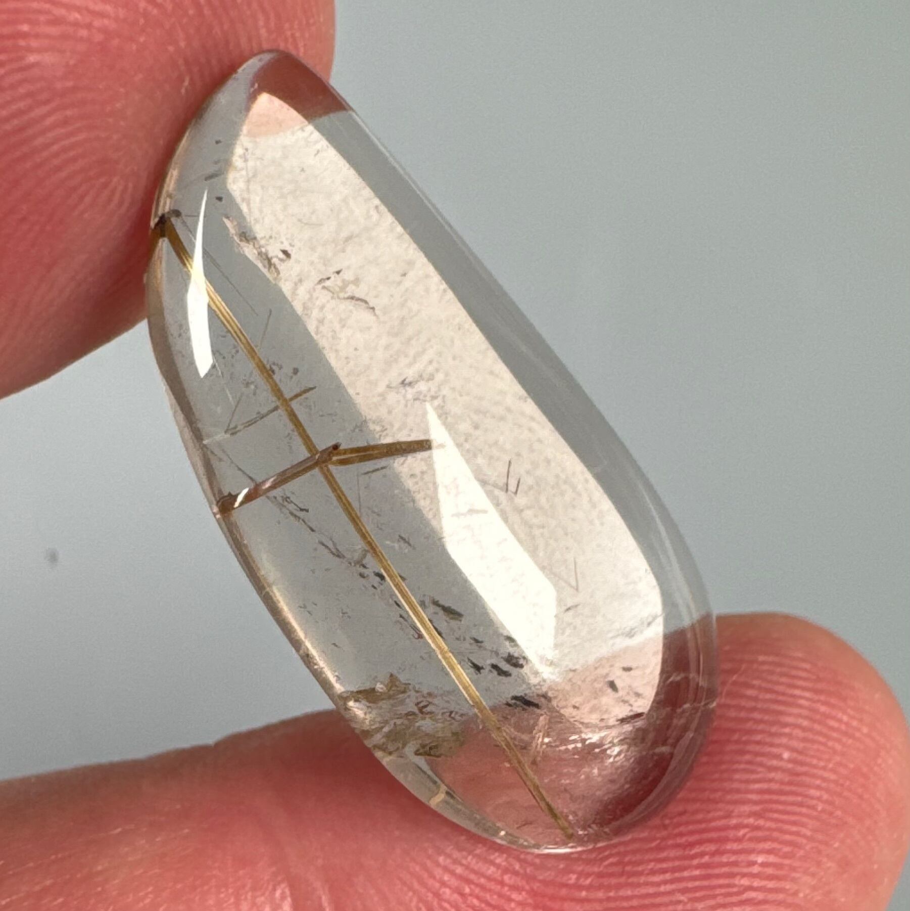 透明感あるスモーキークォーツにうっすらゴールドの針が見られます。