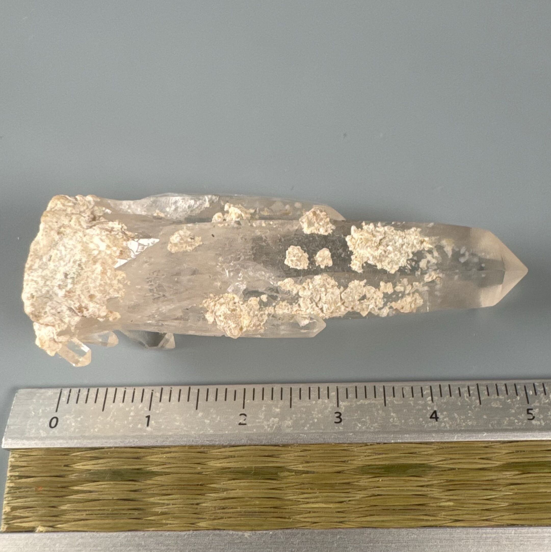 こちらは単体ポイントではなく、周囲にクラスターのように水晶ポイントが見られます。