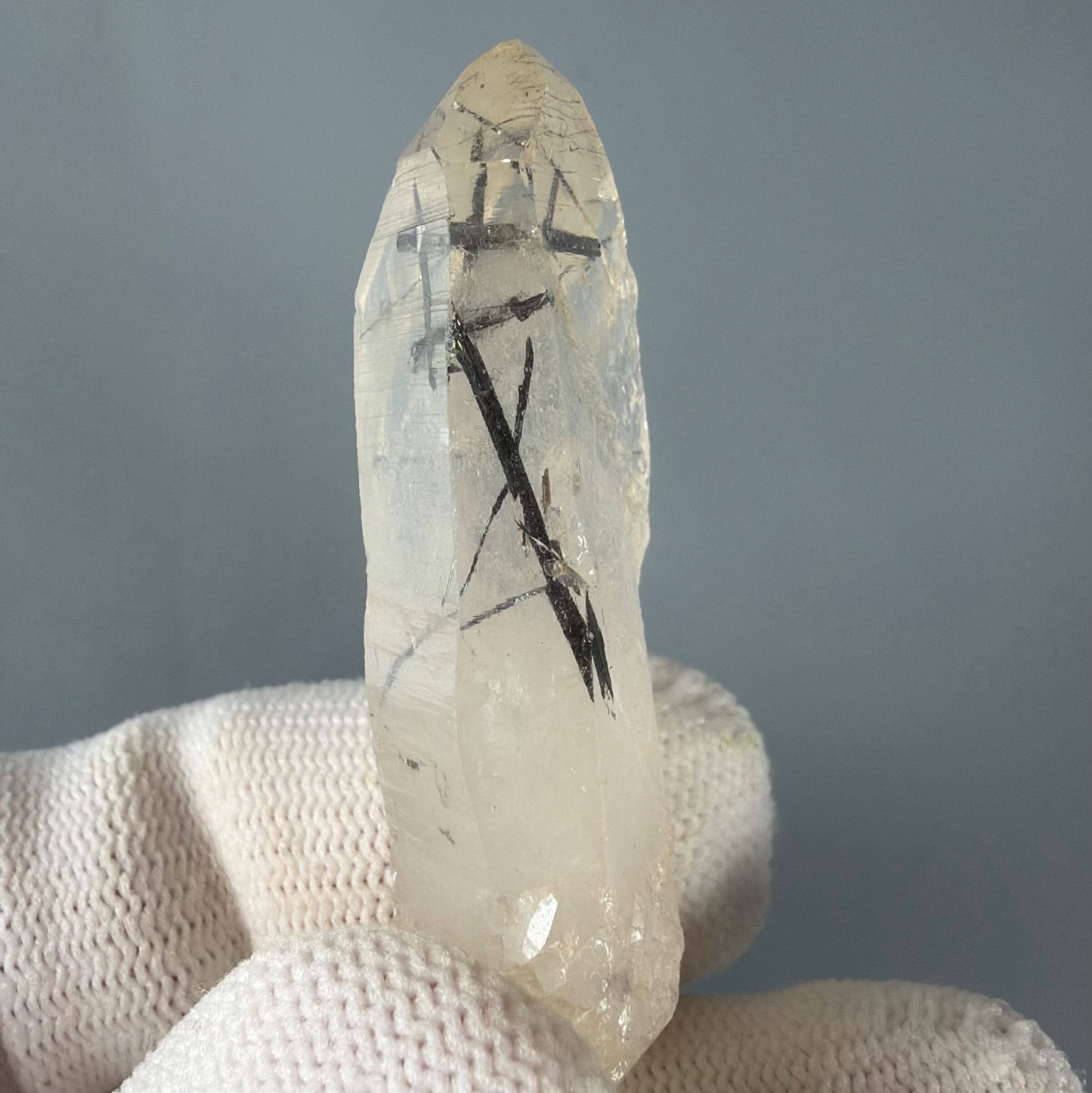ガネーシュヒマール産 トルマリン入り ヒマラヤ水晶 原石ポイント tg956