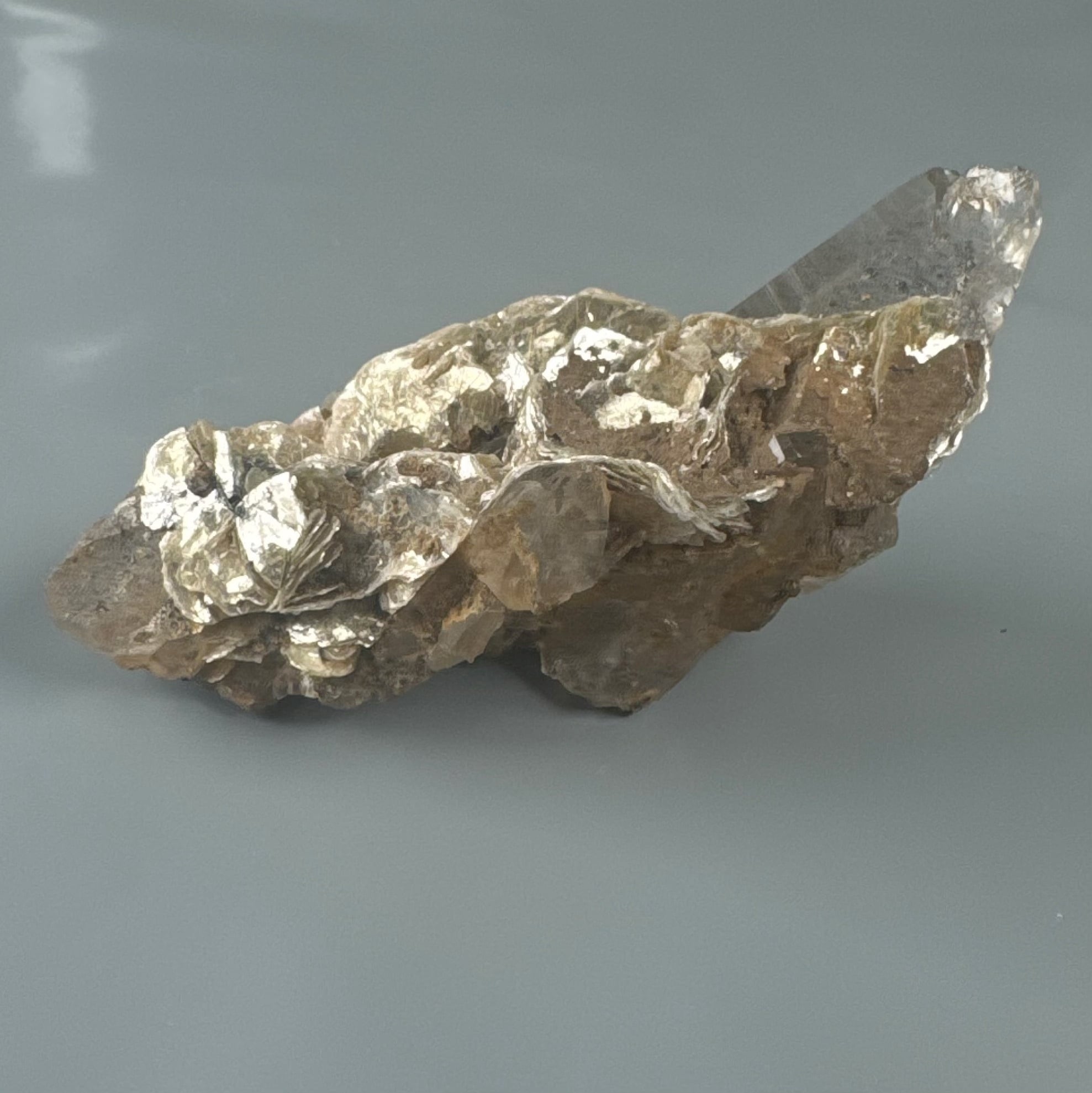 こちらは砂漠の花とも呼ばれる花びら状のヒラヒラしたところにシルバータイプのパイライトが見られます。とても面白い姿です。