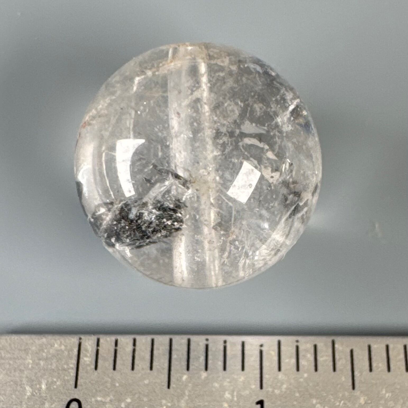 内部クラックと曇りが見られる水晶部、中にはゴロっとしたヘマタイトが2つ見られます。