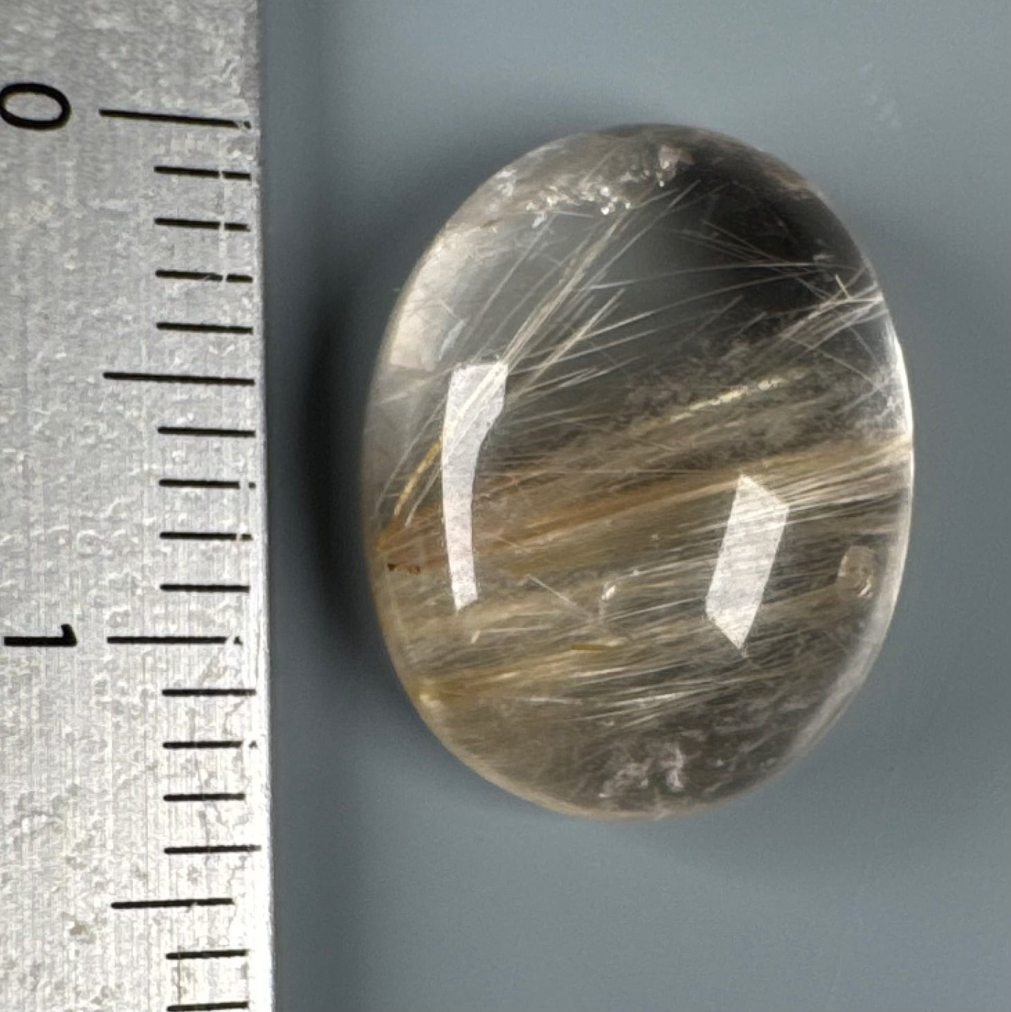 透明度の高い水晶の中に、控えめながらも美しく輝くルチルの針が見られるルースです。