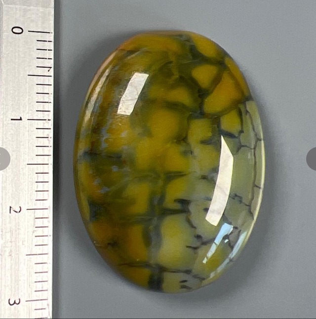 ドラゴンアゲートのイエロー カラー(染め)ルースです。 サイズ:約30×20ミリ 少し暗めのイエローでブラウンとも言える感じです。 どれもが個性的な縞や模様です。 フレーム編みのネックレスの材料にもお勧めですよ。 自然の面白さ、 宇宙の神秘をいつも身に着けてみませんか? 天然石の為、表面に僅かなカケ、ヒビが見られることがあります。 天然石の特性としてご容赦くださいますよう よろしくお願い致します。