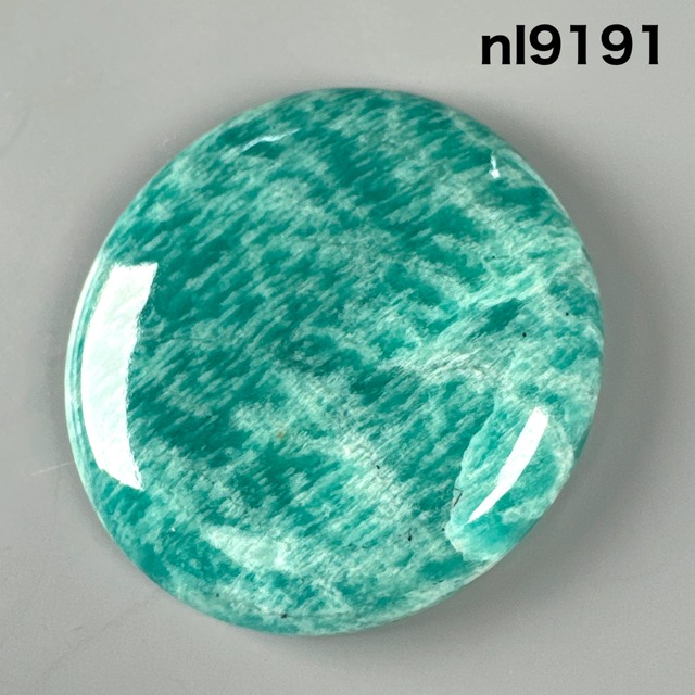 爽やかな水色 マダガスカル産 アマゾナイトのルース ツヤツヤで美しい高品質です。 41ミリのまん丸ルース。 サイズ:約41×41×7.5ミリ 重さ:約20.58グラム 濃い色合いのアマゾナイトです。 是非、個性的なアクセサリーの材料にどうぞ! 自然の面白さ、 宇宙の神秘をいつも身に着けてみませんか? 天然石の為、表面に僅かなカケ、ヒビが見られることがあります。 天然石の特性としてご容赦くださいますよう よろしくお願い致します。