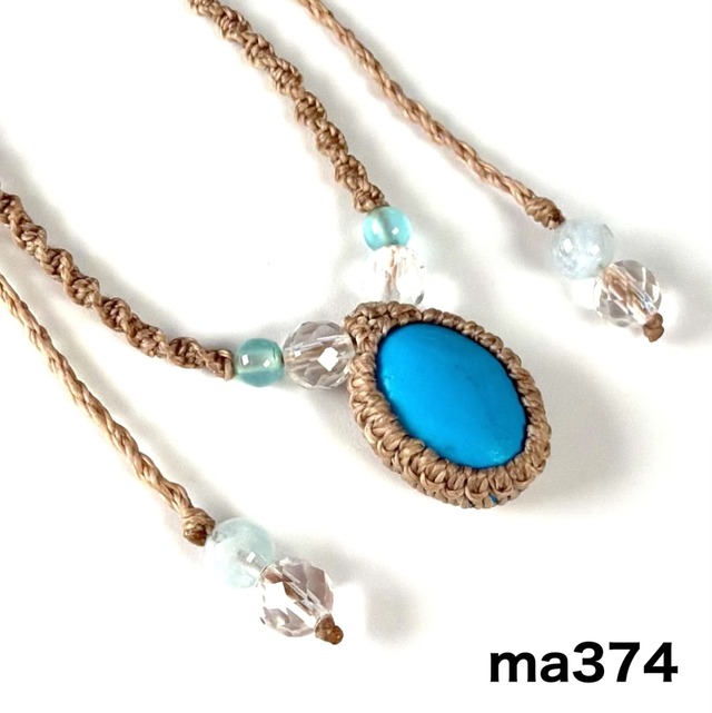 マクラメネックレス ターコイズ × マリンブルーカルセドニー × 水晶 ma374